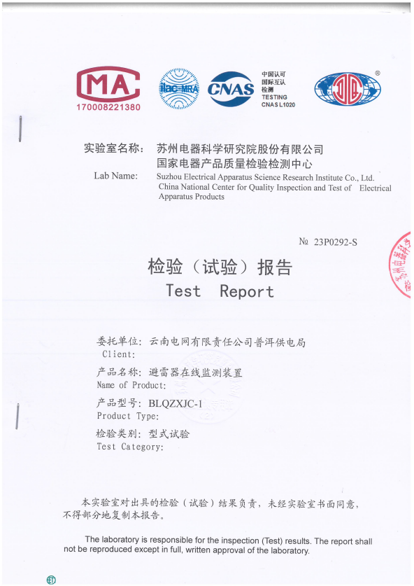 项目组与南网科研院和云南电网开展合作,研发了高多重雷耐受大通流能力500kV、220kV新型避雷器及智能在线监测装置。项目新研制了2ms方波耐受能力4000A、大电流冲击耐受能力130kA的新型D115电阻片,并以此为基础研制了具备更高重复转移电荷及大电流耐受能力的高多重雷耐受大通流能力500kV及220kV用瓷外套无间隙金属氧化物避雷器;研发了多物理参量避雷器智能在线监测装置,通过装置架构设计、硬件设计、软件设计、预警算法与判据等多方面设计和研究,使其具备泄漏电流波形及幅值、冲击电流波形及幅值、阻性电流幅值、冲击动作次数、动作事件、芯体温度等的监测功能,避雷器及监测装置产品均已通过型式试验证。